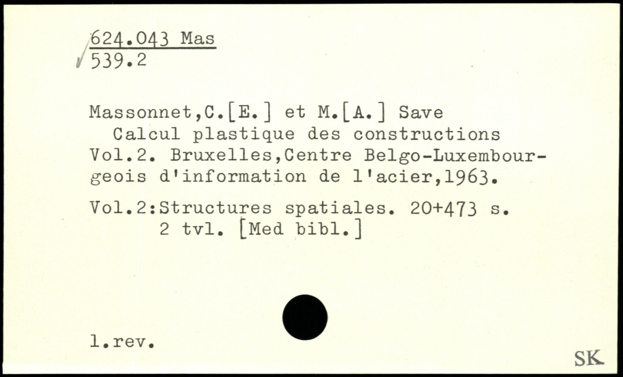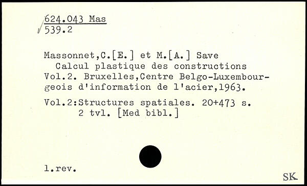Massonnet,C.[E.] et M.[A.] Save Calcul plastique des constructions