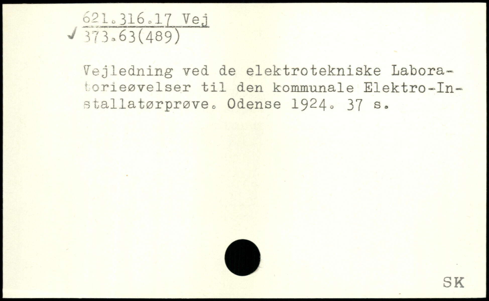 Vejledning ved de elektrotekniske Laboratorieøvelser til den kommunale Elektro-In-stallatørprøveo Odense 1924.