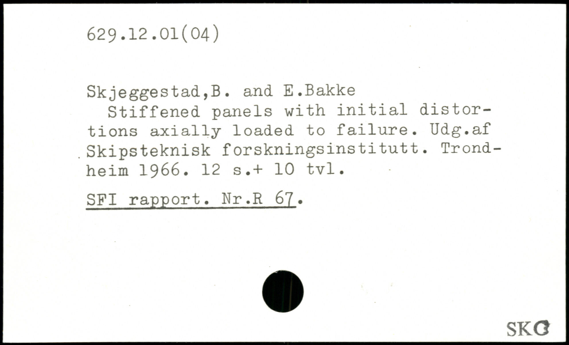 Stiffened panels with initial distortions axially loaded to failure. Udg.af Skipsteknisk forskningsinstitutt.