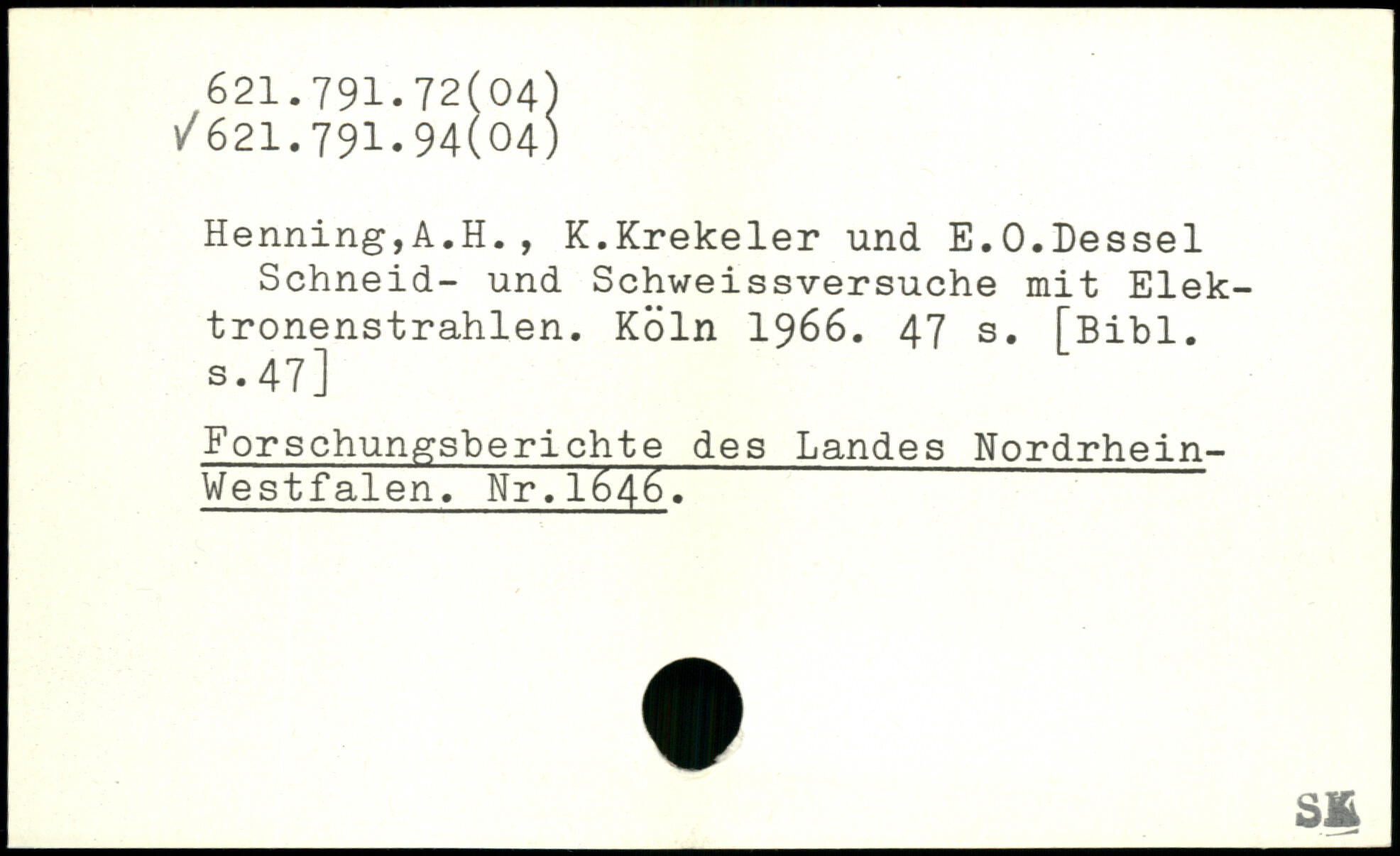 Henning,A.H. , K.Krekeler und E.O.Dessel Schneid- und Schweissversuche mit Elek-tronenstrahlen.