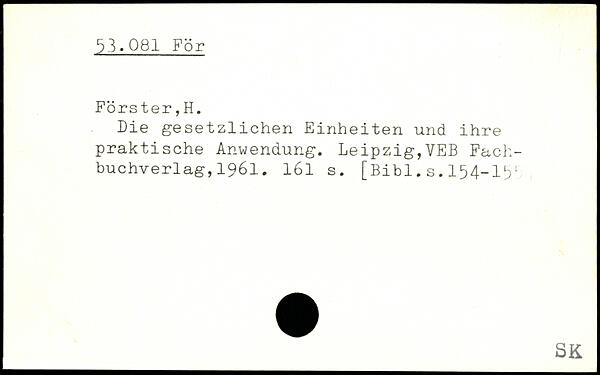 Die gesetzlichen Einheiten und ihre praktische Anwendung.