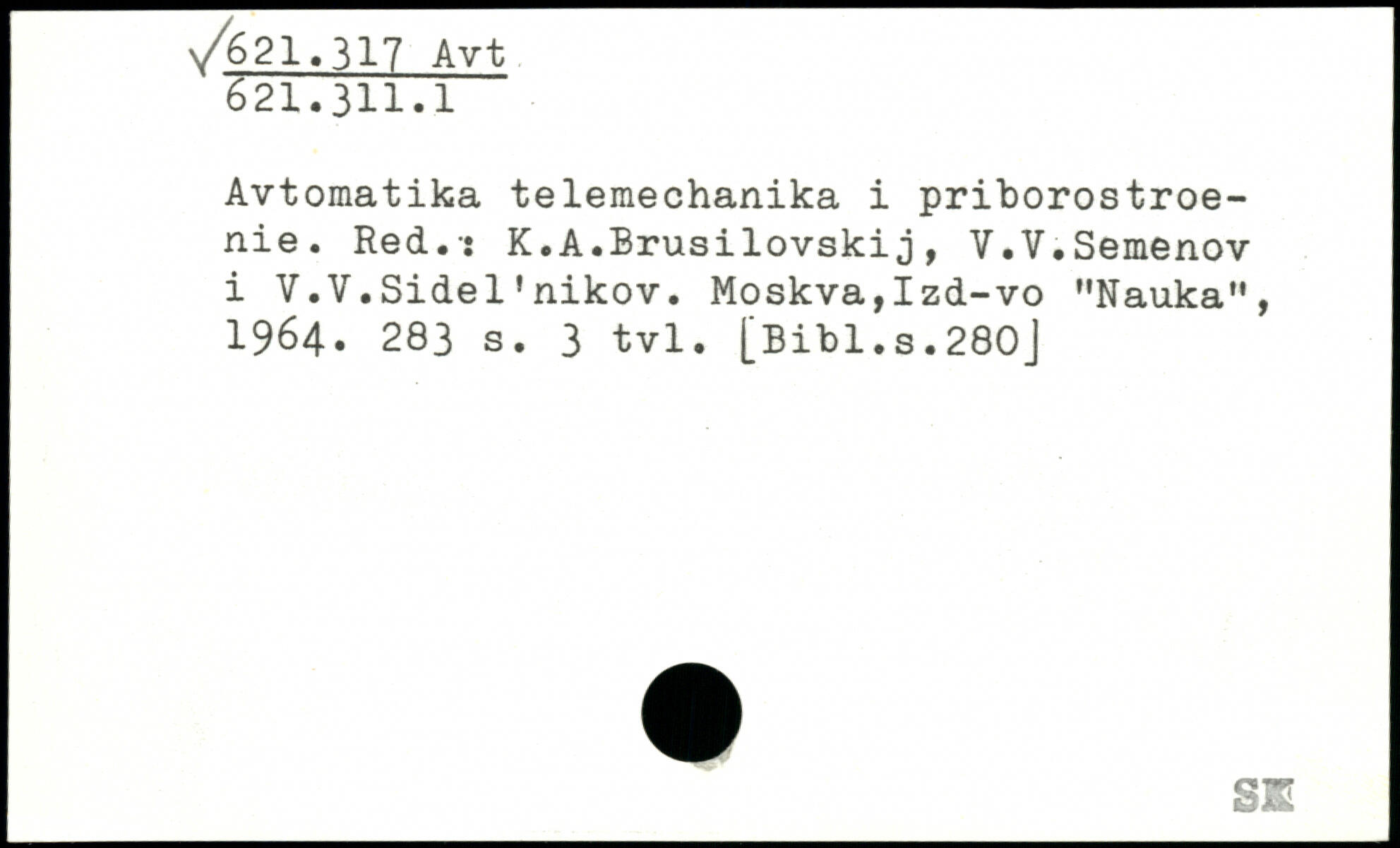 Avtomatika teleraechanika i priborostroe-nie. Red..-: K.A.Brusilovskij , V.V.Semenov i V.V.Sidel'nikov. Moskva,Izd-vo "Nauka", 1964.