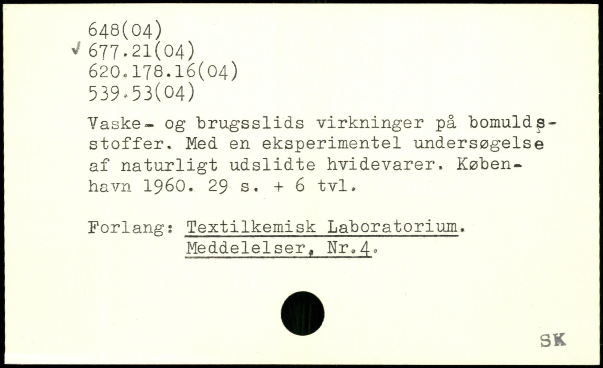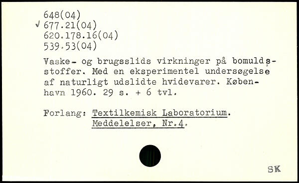 Vaske- og brugsslids virkninger på bomuldsstoffer. Med en eksperimentel undersøgelse af naturligt udslidte hvidevarer