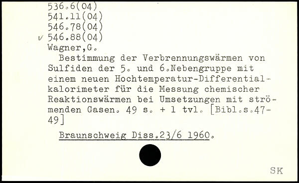 Bestimmung der Verbrennungswärmen von Sulfiden der 5. und 6oNebengruppe mit einem neuen Hochtemperatur-Differentialkalorimeter für die Messung chemischer Reaktionswärmen bei Umsetzungen mit strömenden Gaseno