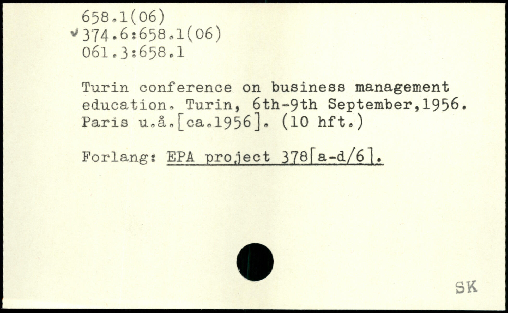 Turin conference on business management education, Turin, 6th-9th September,1956. Paris u.a,[ca.1956], (10 hft.) Porlang: EPA project 378fa-d/6l.