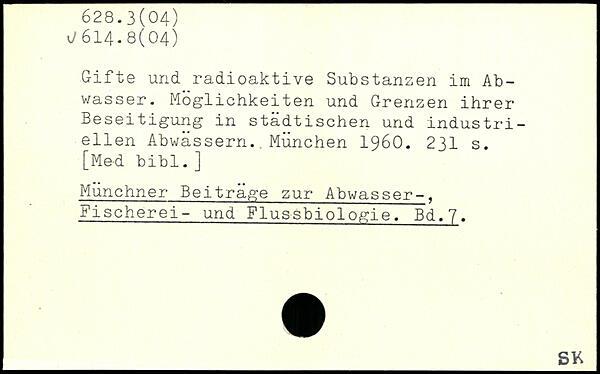 Gifte und radioaktive Substanzen im Abwasser. Möglichkeiten und Grenzen ihrer Beseitigung in städtischen und industriellen Abwässern..