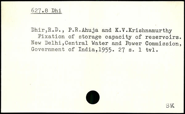 Dhir,R.D,, P.R.Ahuja and K.V.Krishnamurthy Fixation of storage capacity of reservoirs. New Delhi,Central