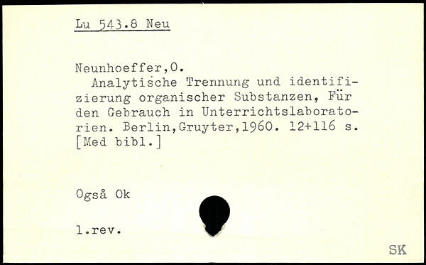 Analytische Trennung und Identifizierung organischer Substanzen, Für den Gebrauch in Unterrichtslaboratorien.
