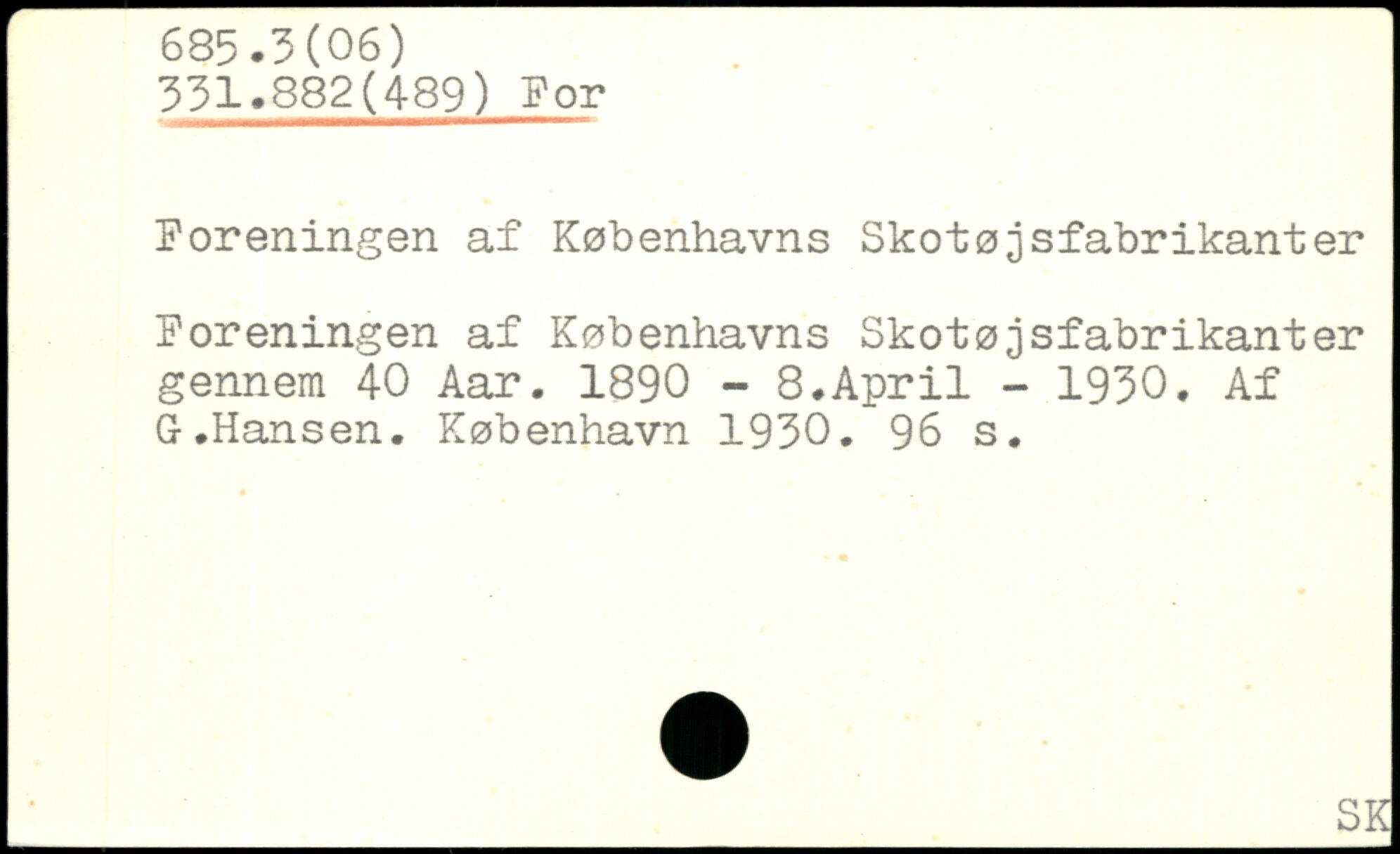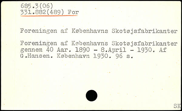 Foreningen af Københavns Skotøjsfabrikanter Foreningen af Københavns Skotøjsfabrikanter gennem 40 Aar. 1890 - 8.April - 1930. Af G.Hansen.
