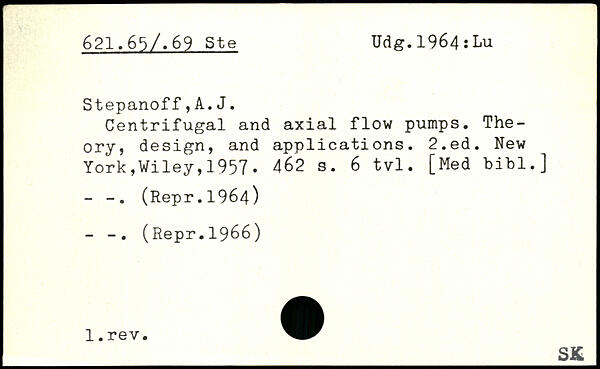 Centrifugal and axial flow pumps. Theory, design, and applications.