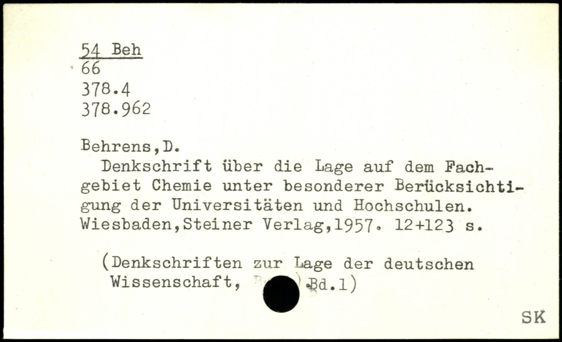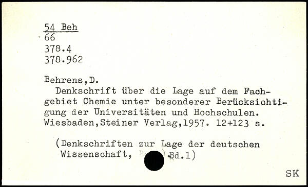 Denkschrift über die Lage auf dem Fachgebiet Chemie unter besonderer Berücksichtigung der Universitäten und Hochschulen.