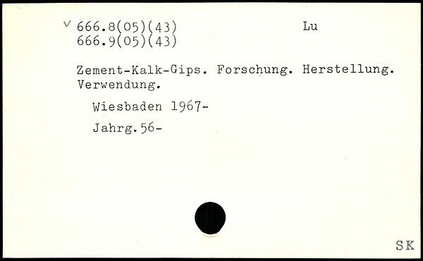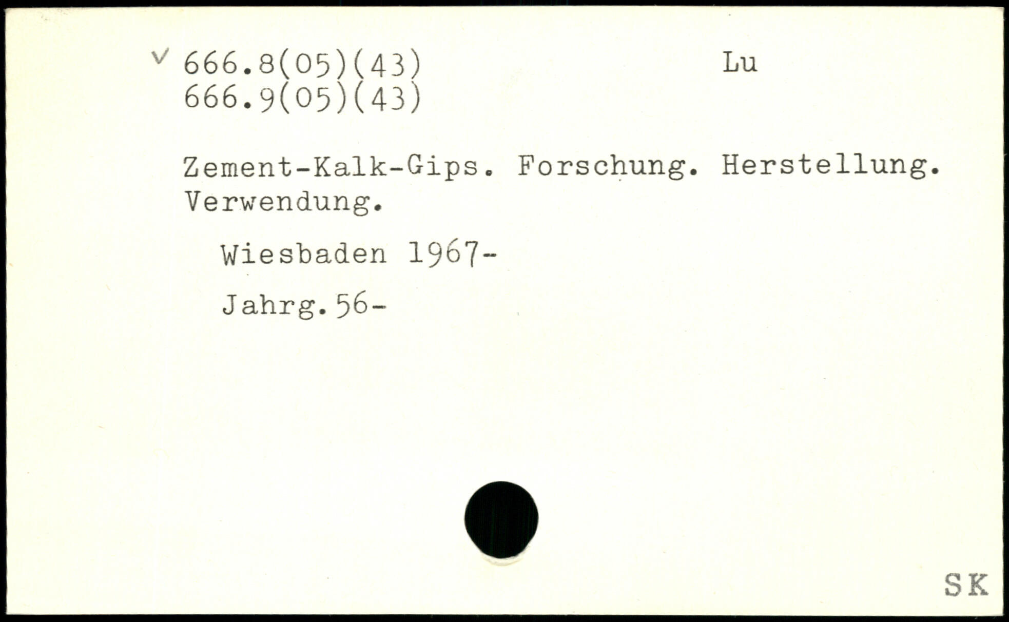 Zement-Kalk-Gips. Forschung. Herstellung. Verwendung. Wiesbaden 1967- Jahrg.56-