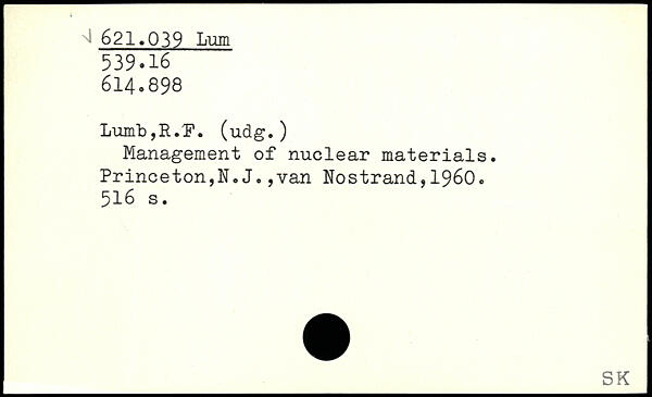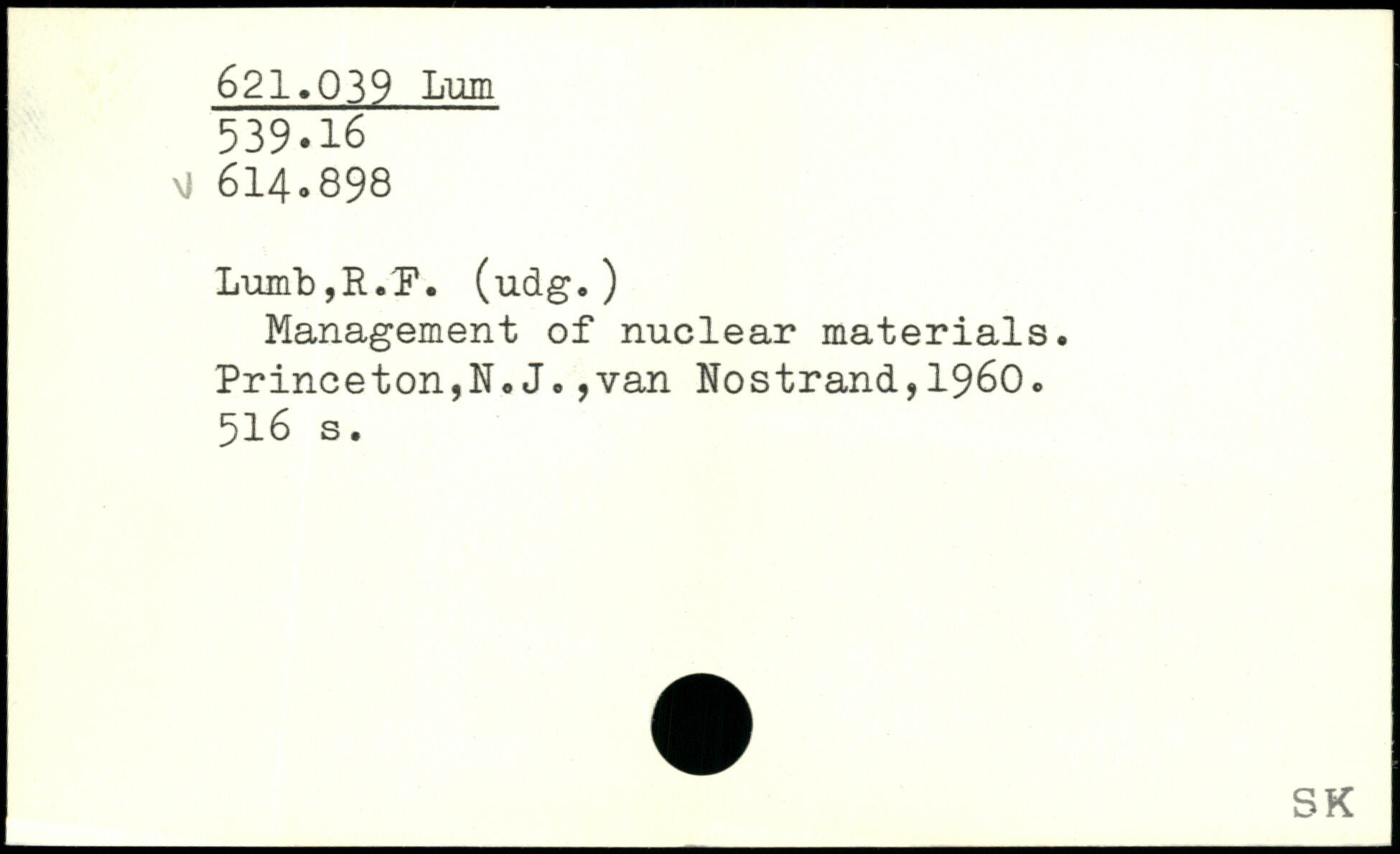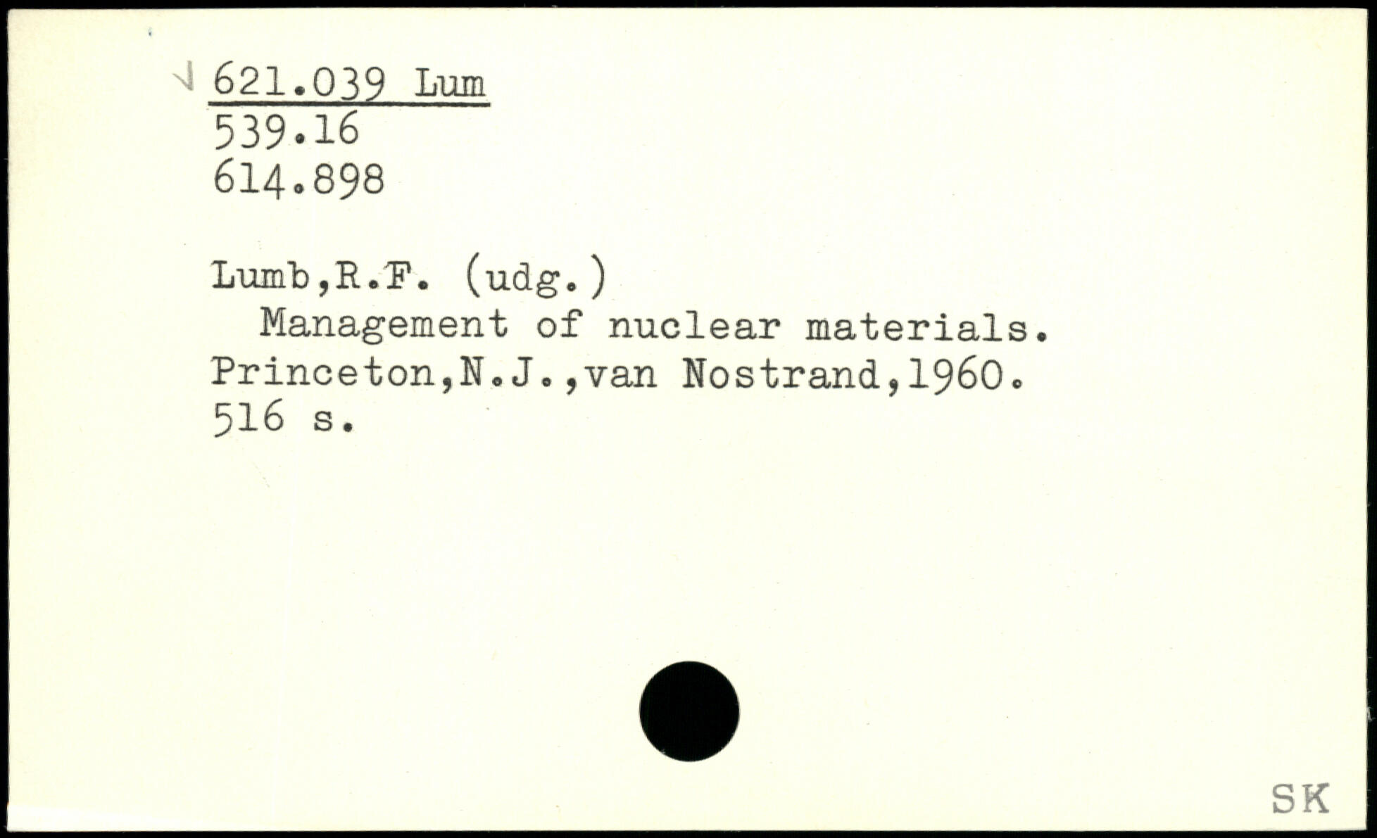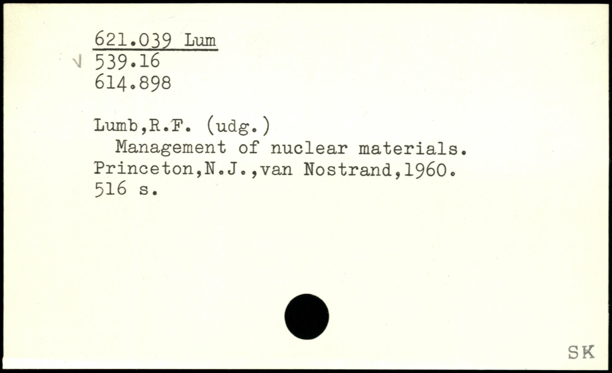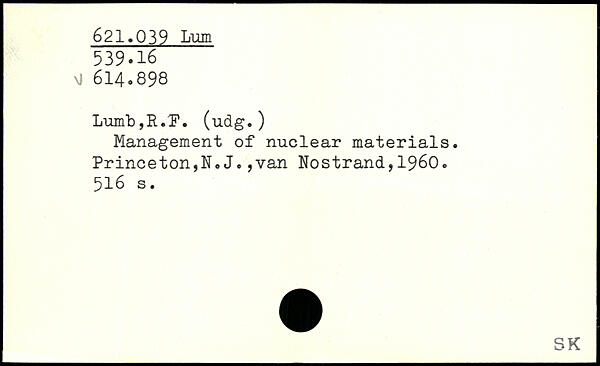 Management of nuclear materials. Princeton,N.J.,van Nostrand,1960.