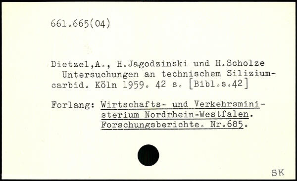 Dietzel,Ao, HoJagodzinski und H.Scholze Untersuchungen an technischem Silizium-carbido
