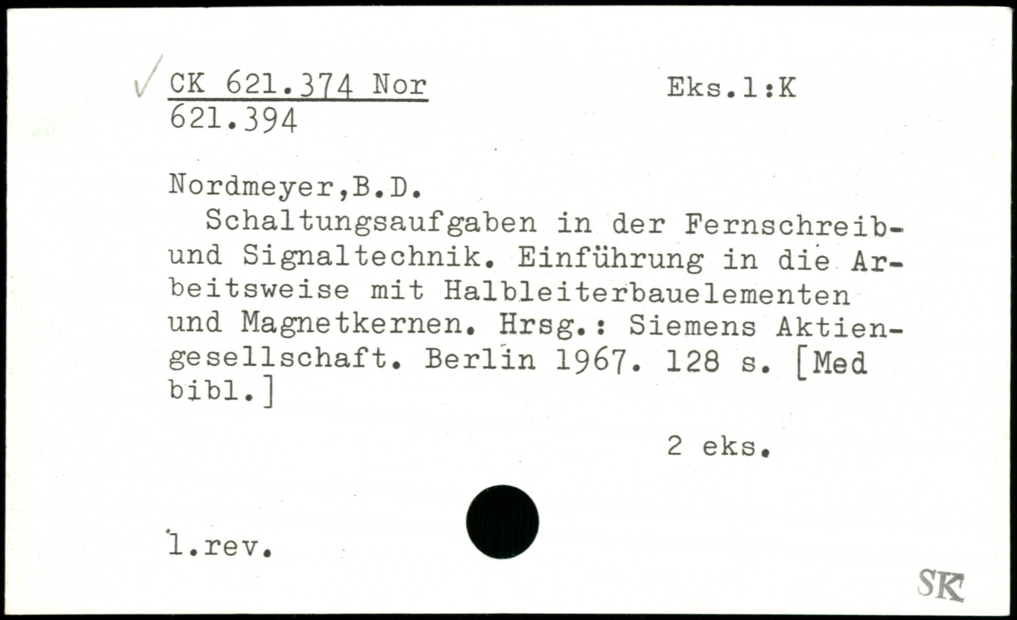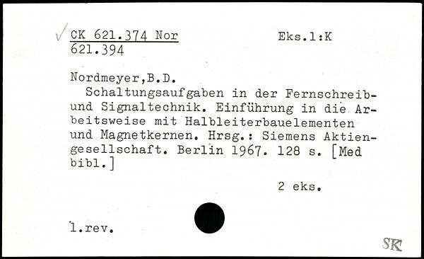 Schaltungsaufgaben in der Fernschreibund Signaltechnik. Einführung in die Arbeitsweise mit Halbleiterbauelementen und Magnetkernen. Hrsg.: Siemens Aktiengesellschaf t.