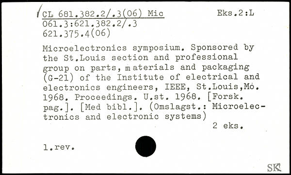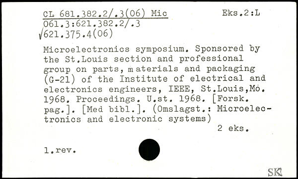 Microelectronics symposium. Sponsored "by the St.Louis section and professional group on parts, materials and packaging (G-2l) of the Institute of electrical and electronics engineers, IEEE, St.