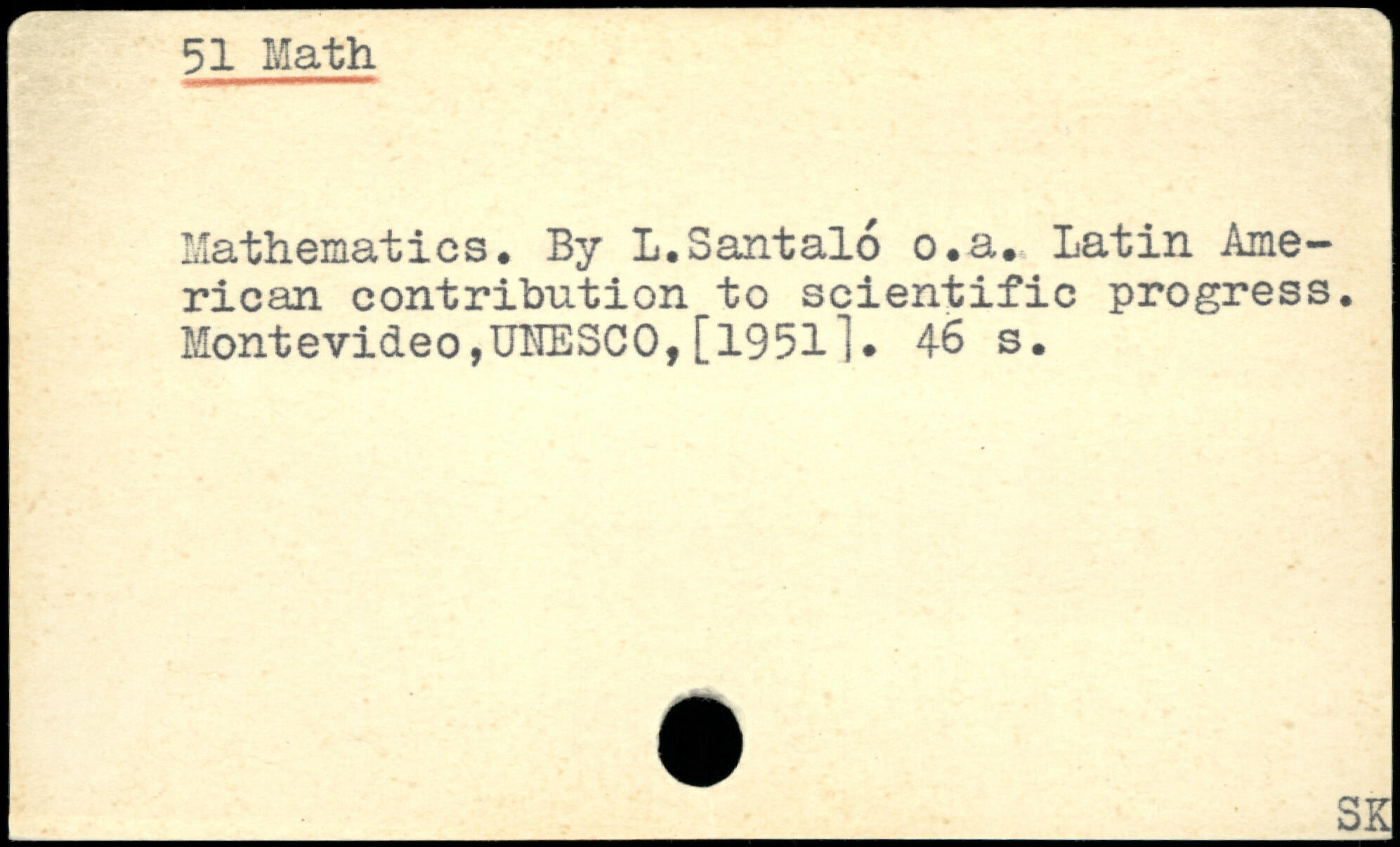 Mathematics, By L.Santalo o,a, Latin American contribution to scientific progress, Montevideo,OTESCO,[19511.