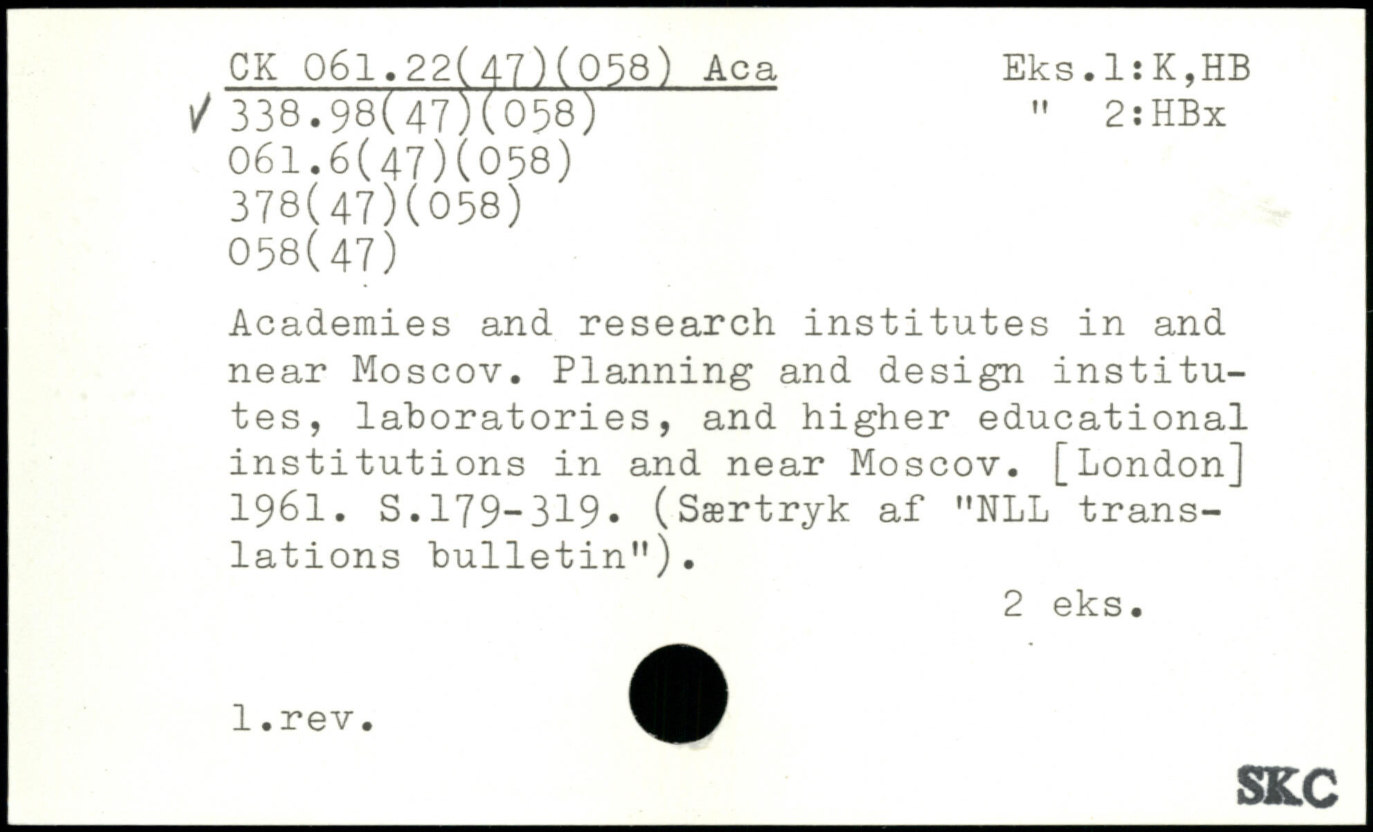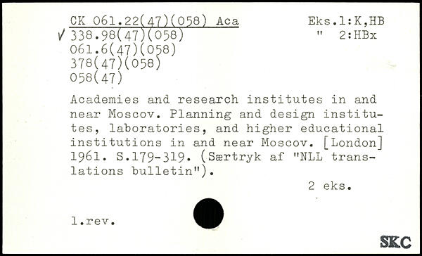 Academies and research institutes in and near Moscov. Planning and design institutes, laboratories, and higher educational institutions in and near Moscov.