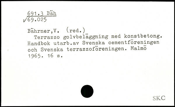 Bahrner,V. (red.)^ Terrazzo golvbeläggning med konstbetong. Handbok utarb.av Svenska cementföreningen och Svenska terrazzoföreningen. Malmö 1965.
