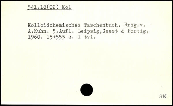 Kolloidchemisches Taschenbuch. HrsgoV. A.Kuhn. 5'Aufl.