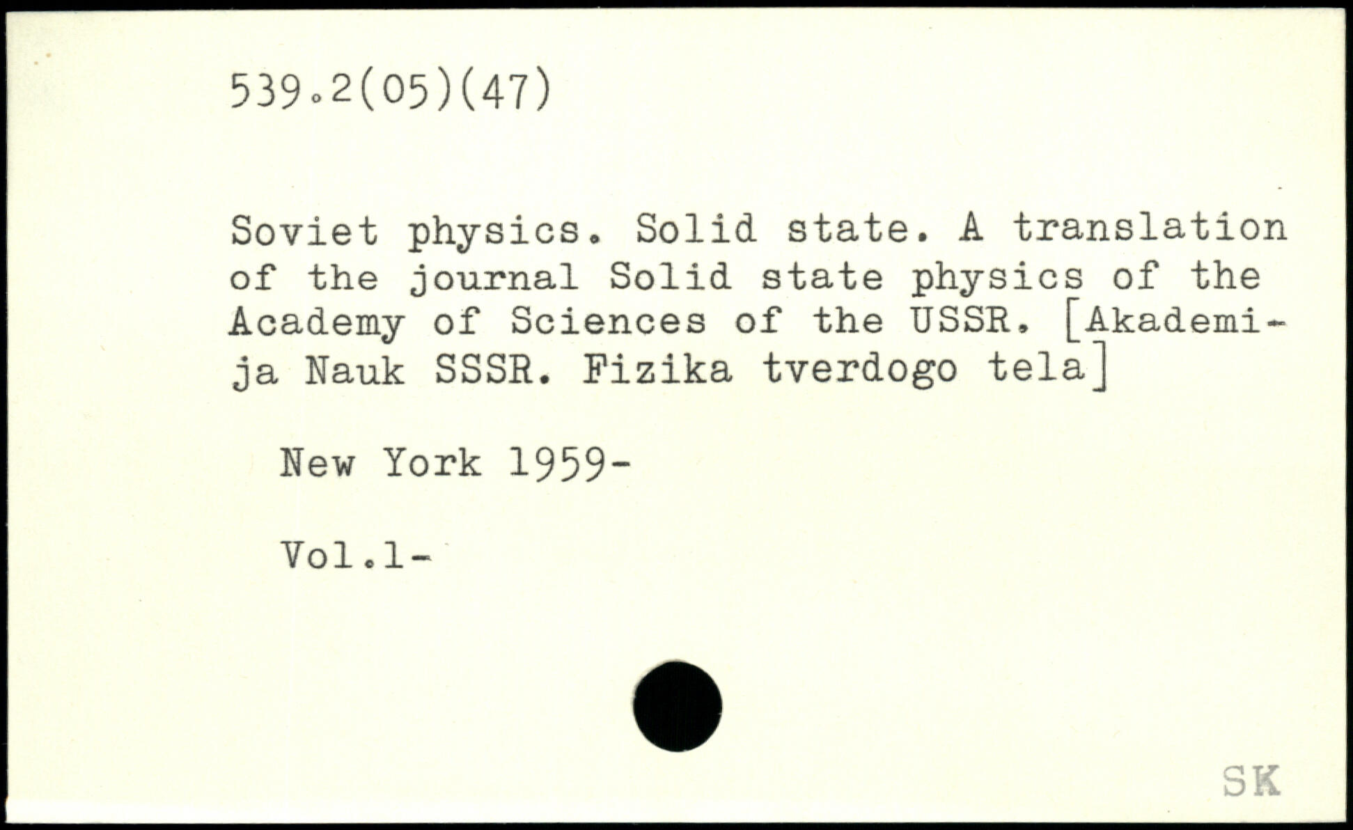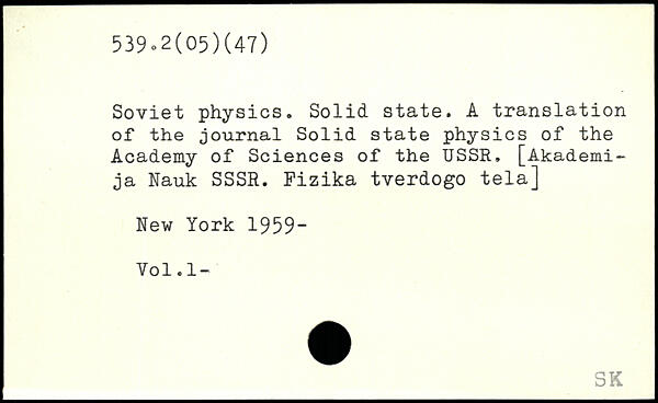 Soviet physics. Solid state. A translation of the journal Solid state physics of the Academy of Sciences of the USSR. [Akademi-ja Nauk SSSR. Fizika tverdogo tela]