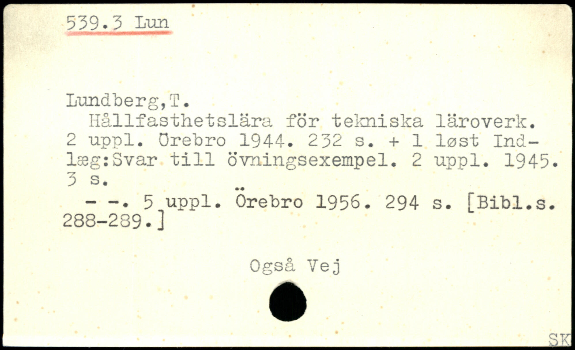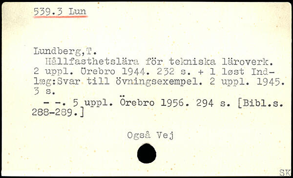 539 ,3 hun Lundberg,!. Hållfasthetslära för tekniska läroverk.