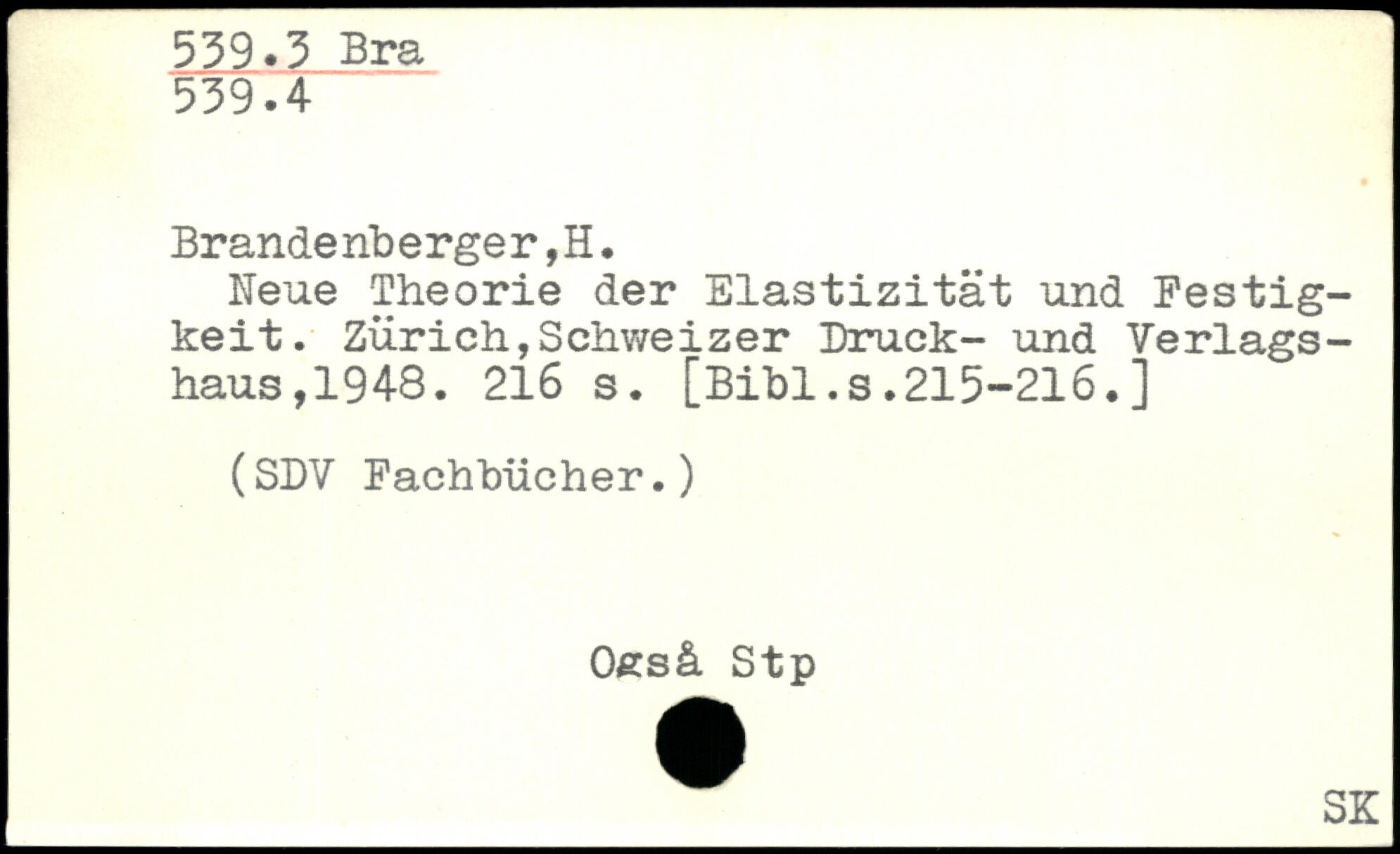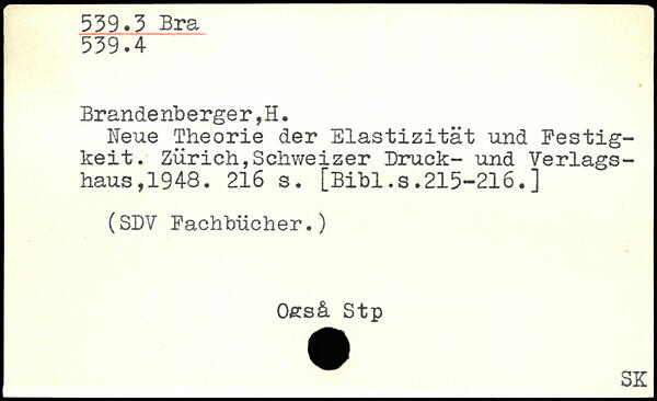 Brande nb erge r,H. Neue Theorie der Elastizität und Festigkeit.