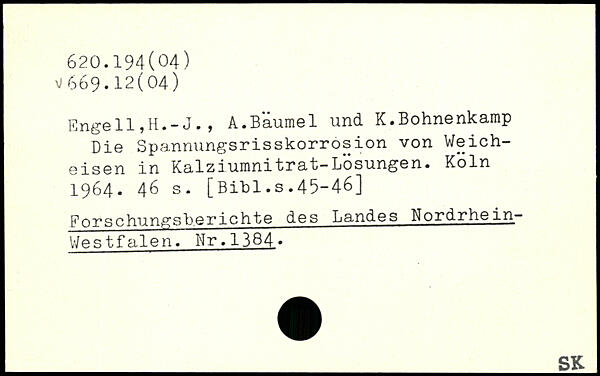 Engeil,H.-J. , A.Baume1 und K.Bohnenkamp Die Spannungsrisskorrosion von Weicheisen in Kalziumnitrat-Lösungen.