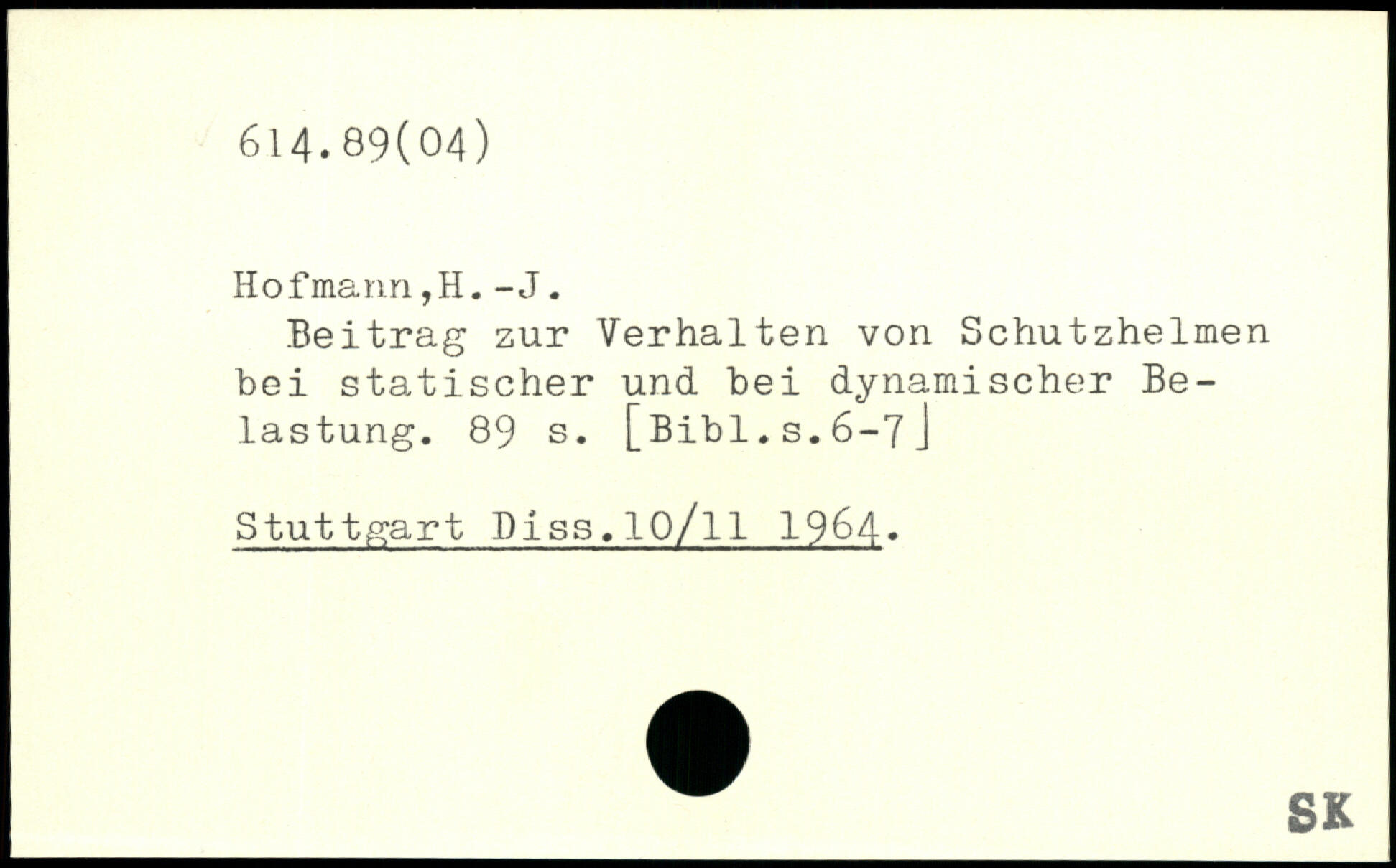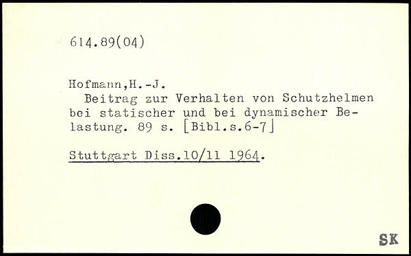 Beitrag zur Verhalten von Schutzhelmen bei statischer und bei dynamischer Belastung.