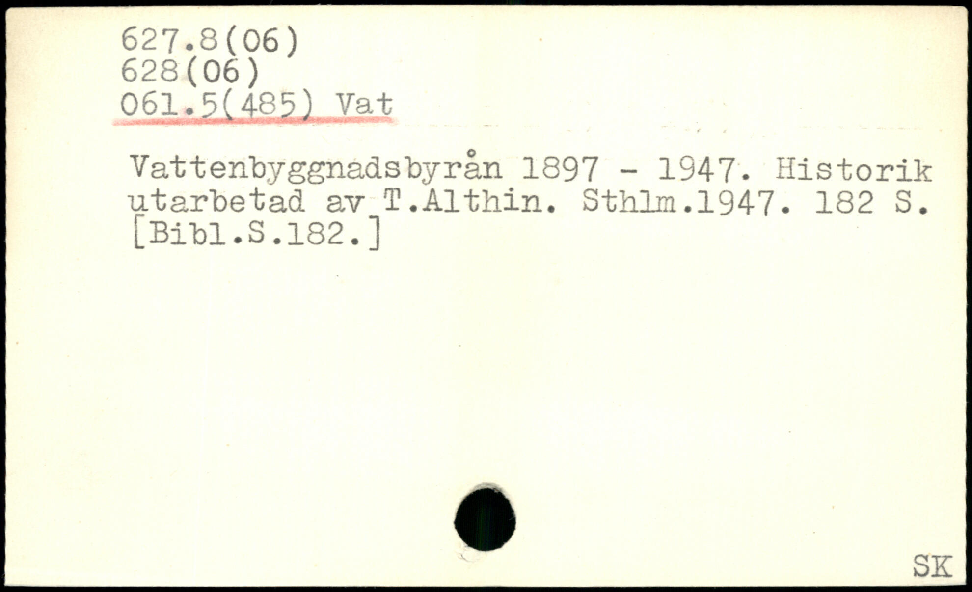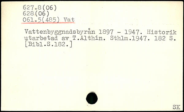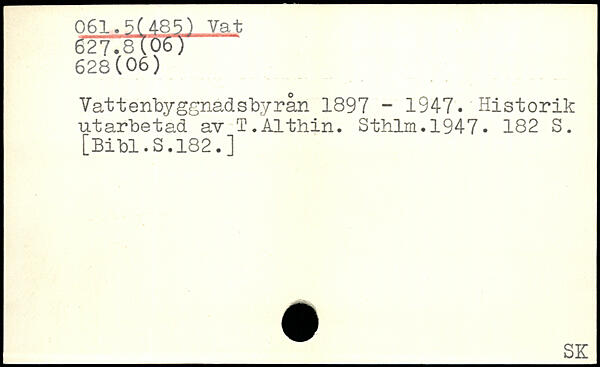 Vattenbyggnadsbyrån 1897 - 1947. Historik utarbetad av T.Althin. Sthlm.1947.