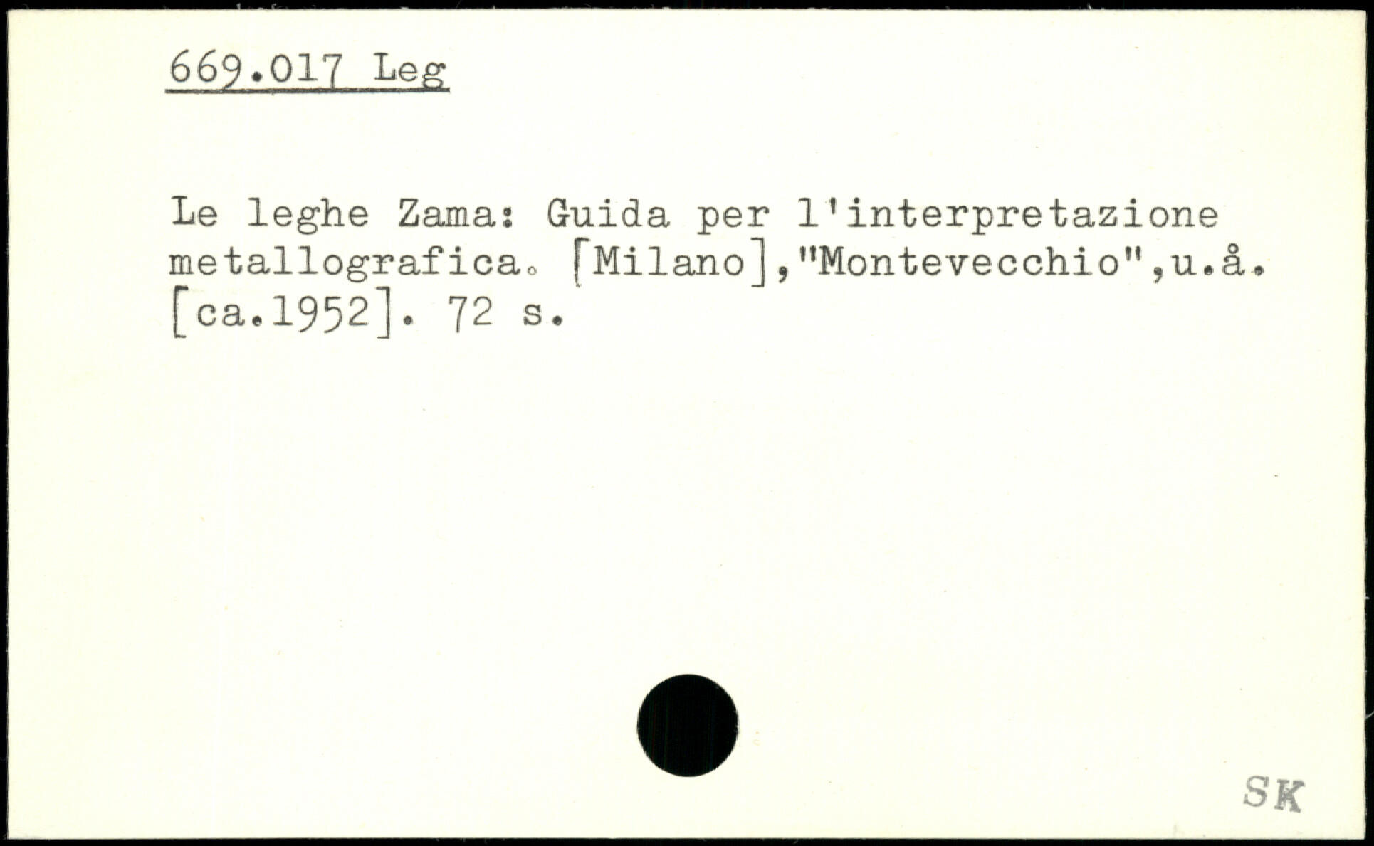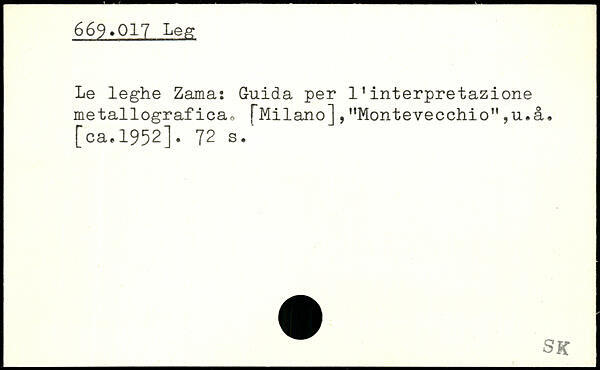Le leghe Zamai Guida per 11interpretazione metallografica, fMilano],"Montevecchio",u.à.