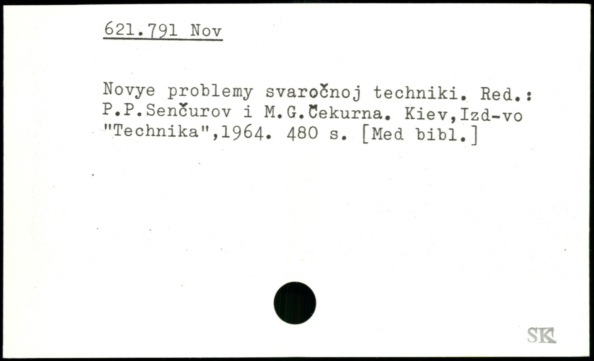Novye problemy svaroSnoj techniki. Red. : P.P.Sencurov i M.G.Cekurna. Kiev,Izd-vo "Technika",1964.