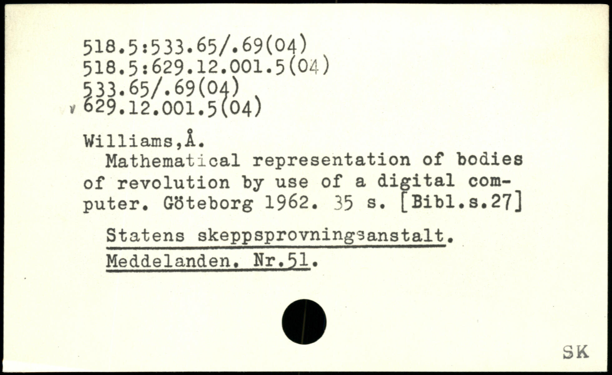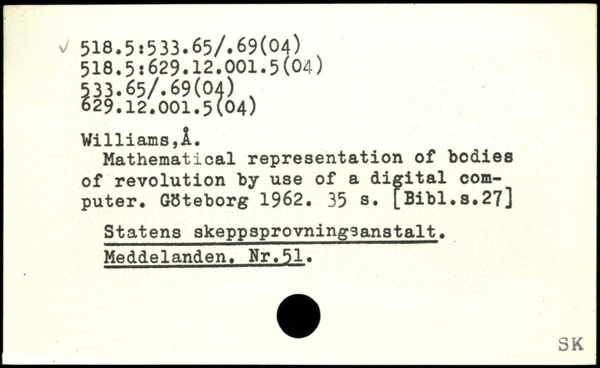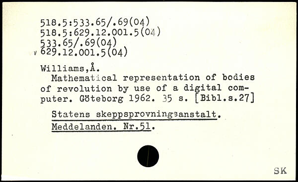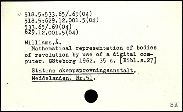 Mathematical representation of bodies of revolution by use of a digital computer, Göteborg 1962