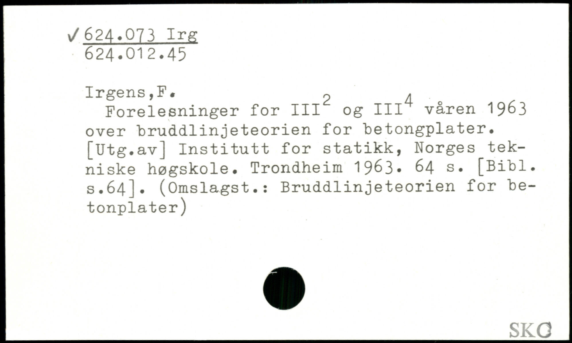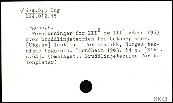 Forelesninger for III og III våren 19^3 over bruddlinjeteorien for betongplater. [Utg.av] Institutt for statikk, Norges tekniske høgskole. Trondheim 19^3.