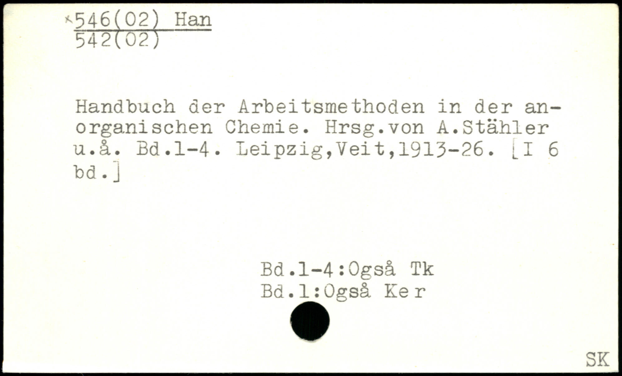 Handbuch der Arbeitsmethoden in der anorganischen Chemie. Hrsg.von A.Stähler u.å.