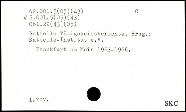 Battelle Tatigskeitsberichte. Hrsg.: Battelle-Institut e.V.