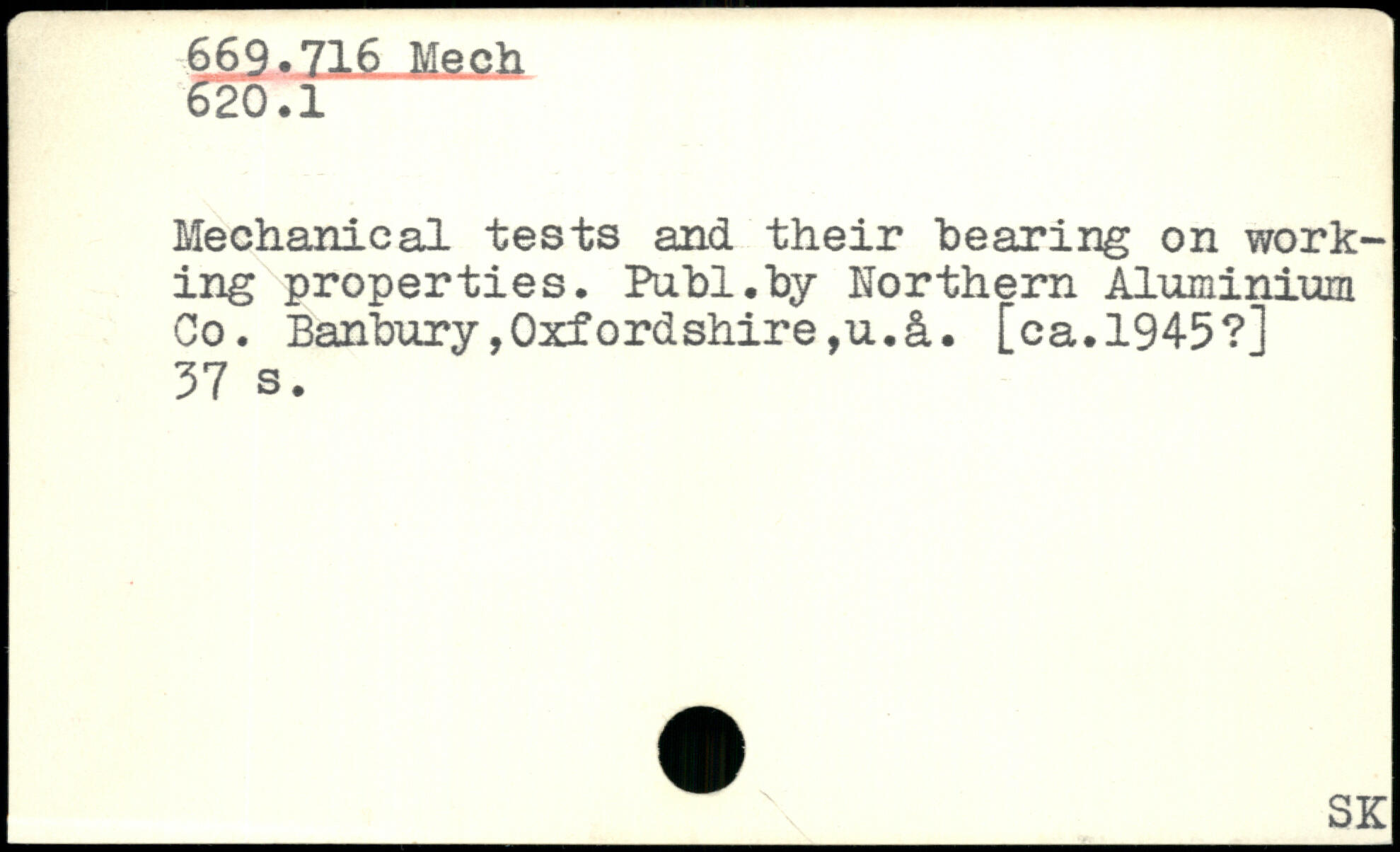 Mechanical tests and their hearing on working properties. Publ.hy Northern Aluminium Co. Banbury,Oxfordshire,u.&. [ca.1945?]