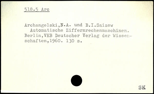 Automatische Ziffernrechenmaschinen. Berlin,VEB Deutscher Verlag der Wissenschaften,1960.