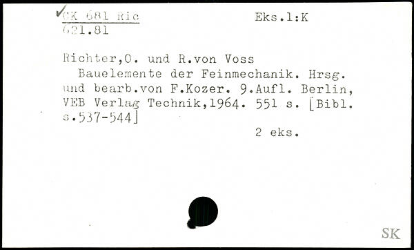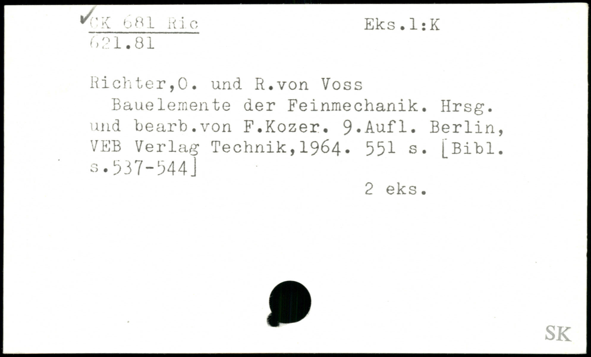 Richter,0. und R.von Voss Bauelemente der Feinmechanik. Hrsg, und bearb.von F.Kozer.