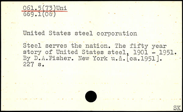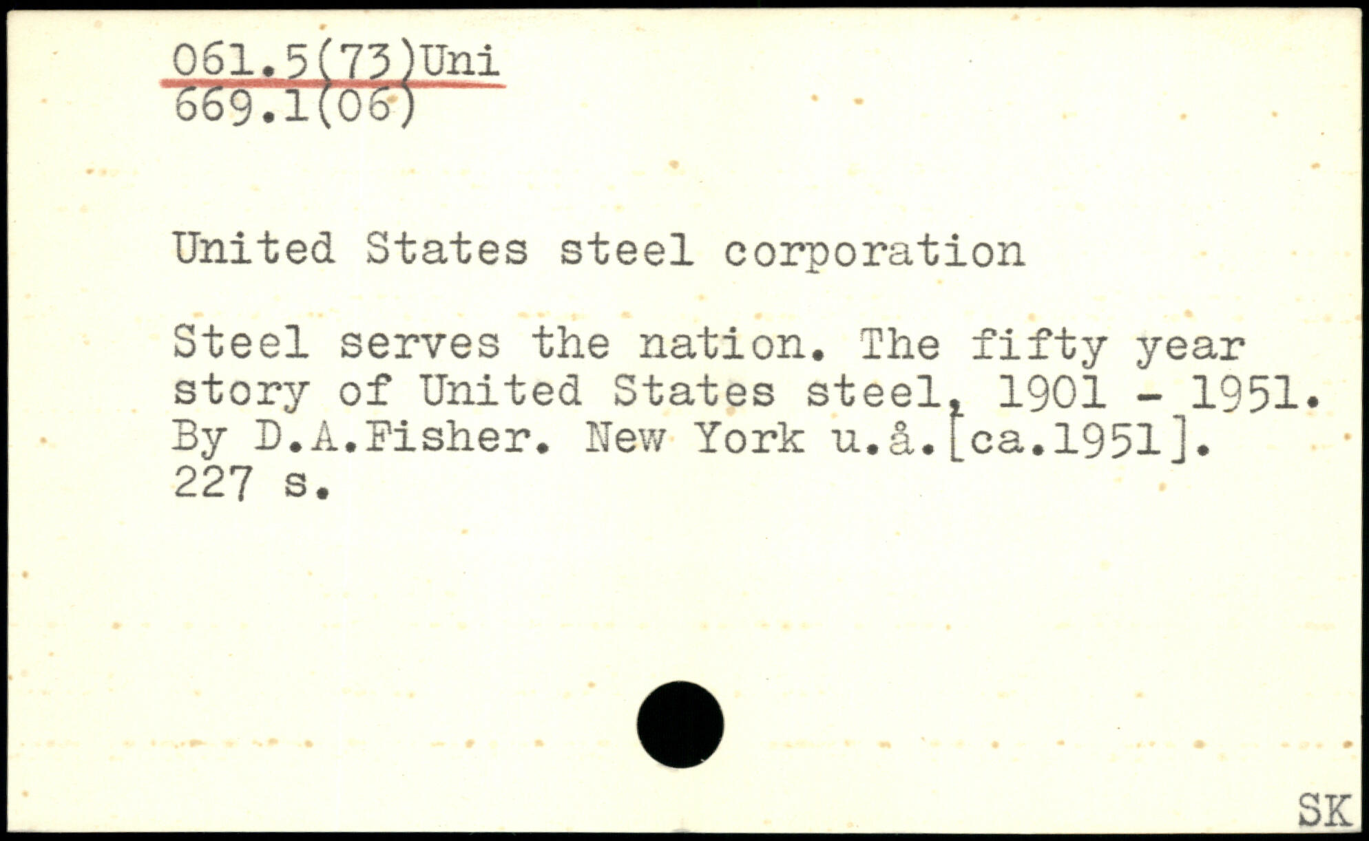 United States steel corporation Steel serves the nation. The fifty year story of United States steel, 1901 - 1951, By D.A.Fisher. New York u. §,. [ca.1951].