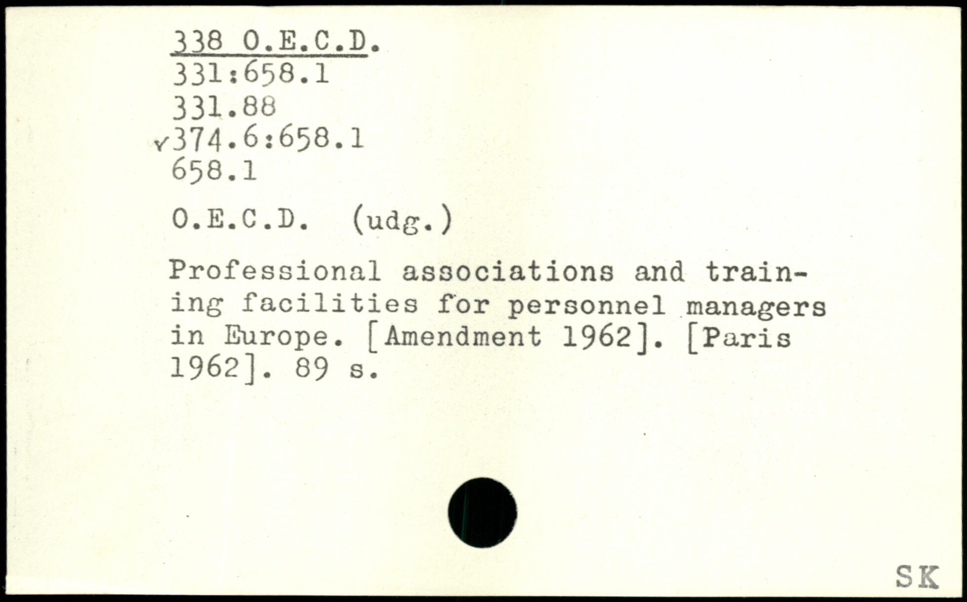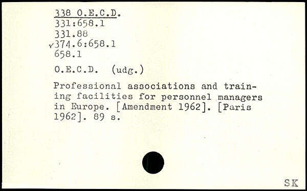 Professional associations and training. facilities for personnel managers in Europe. [Amendment 1962]