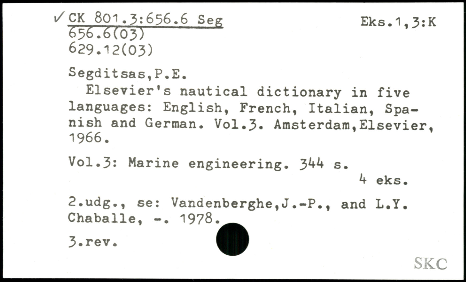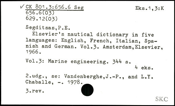 Elsevier's nautical dictionary in five languages: English, French, Italian, Spanish and German. V0I.3.