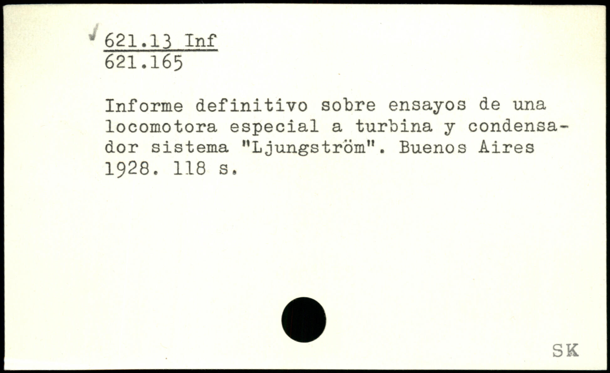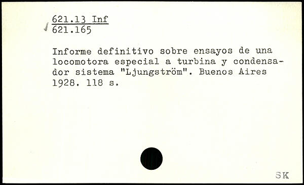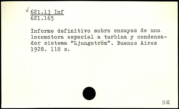 Informe definitivo sobre ensayos de una locomotora especial a turbina y condensa-dor sistema "Ljungström". Buenos Aires 1928.