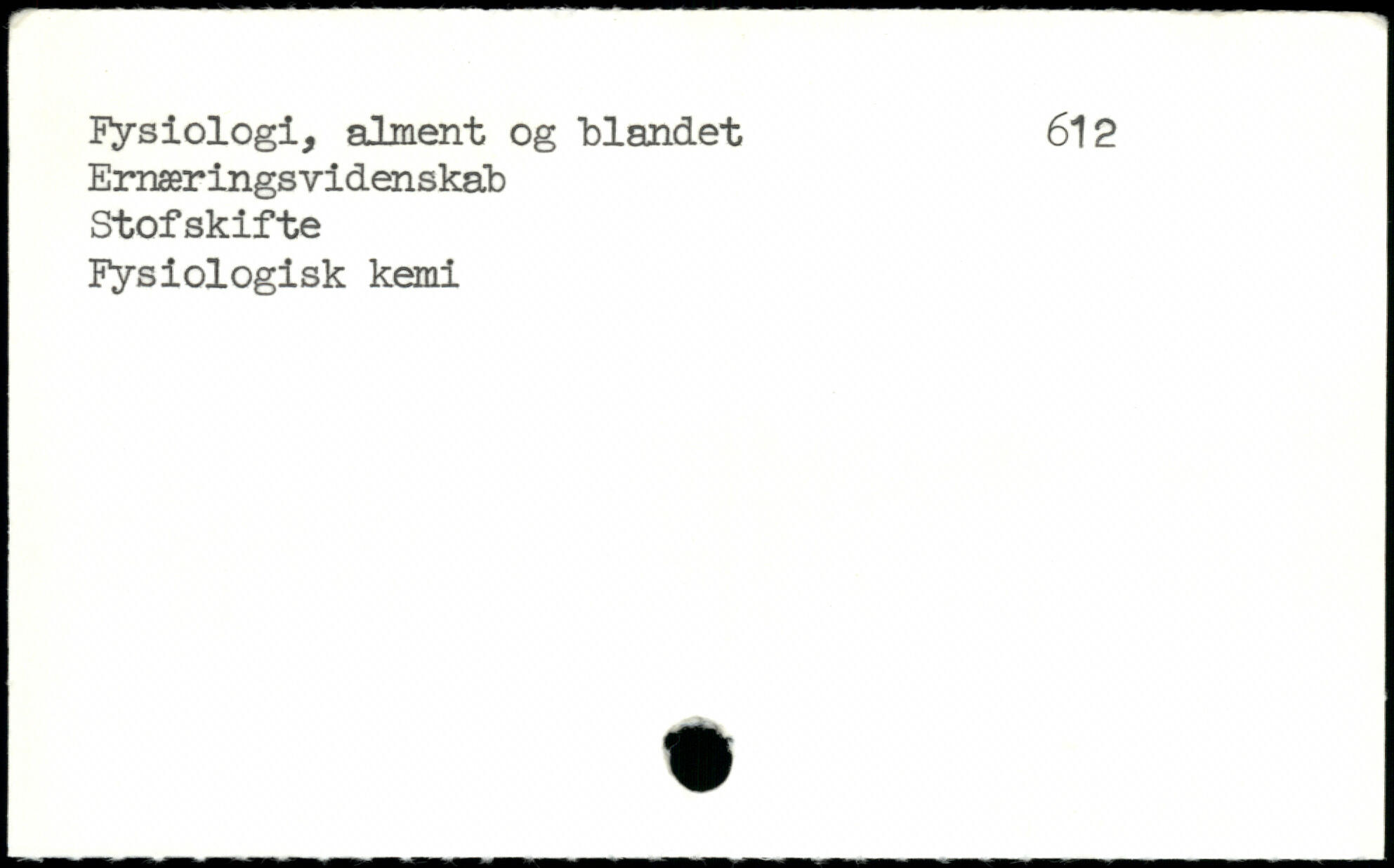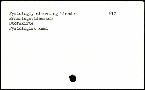 Fysiologi, alment og blandet 612 Eraæringsvidenskab Stofskifte Fysiologisk kemi