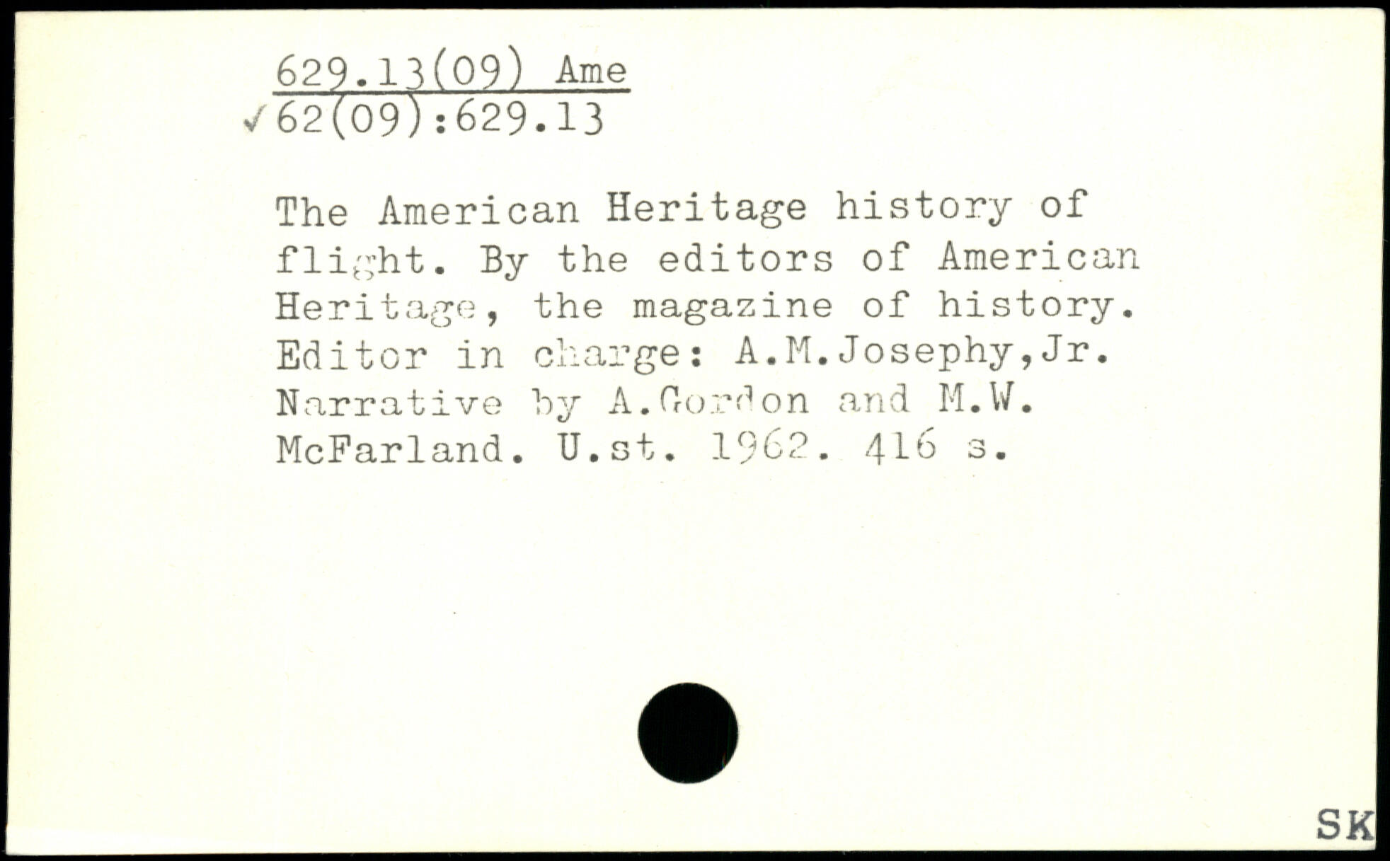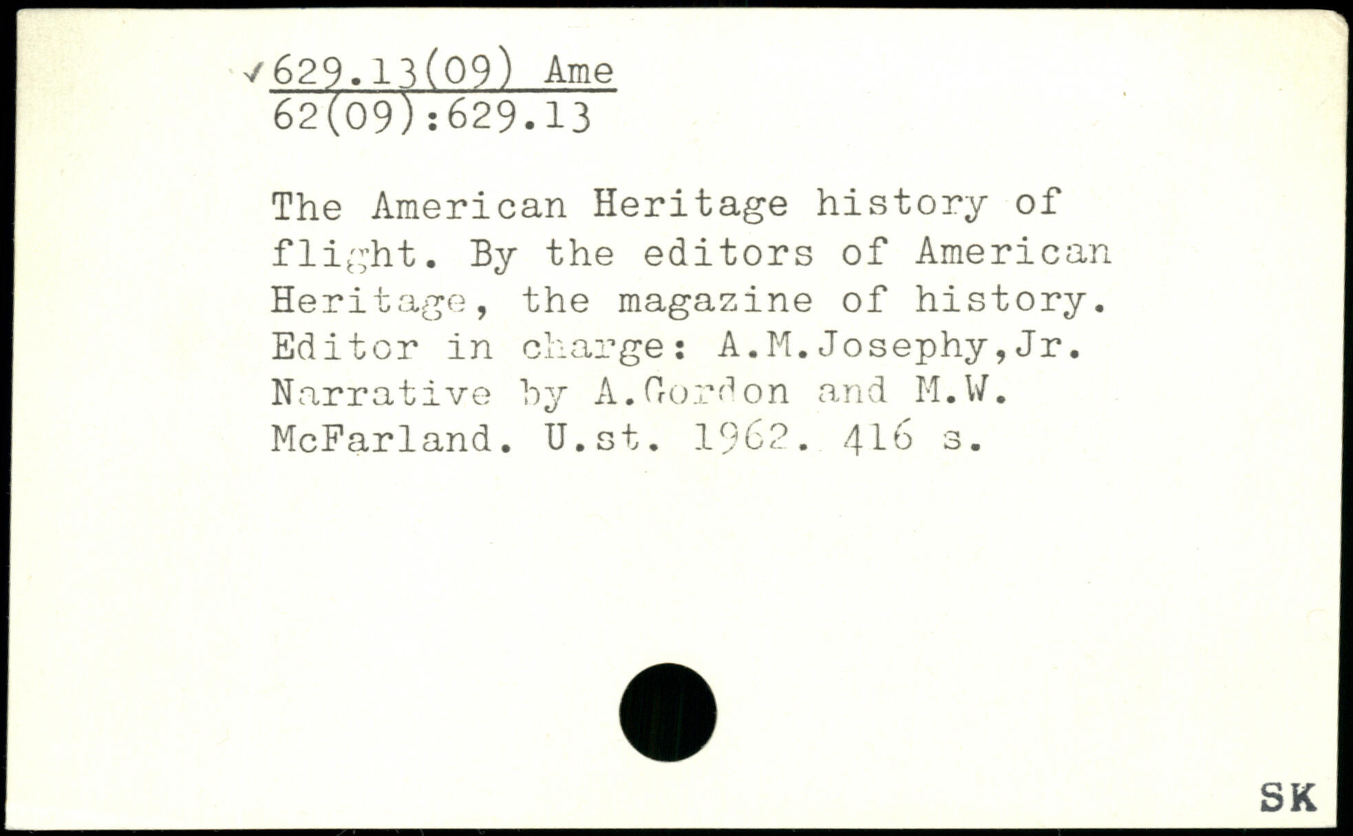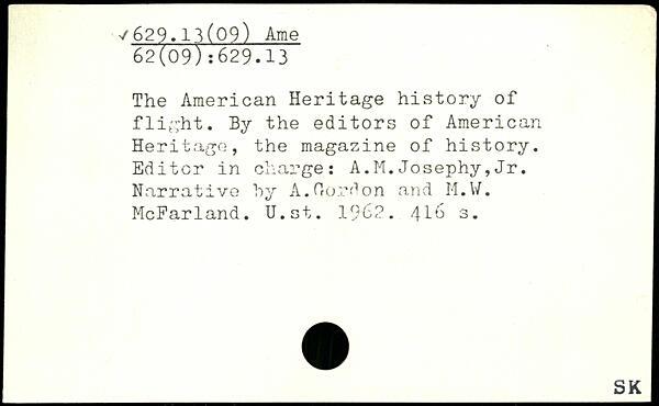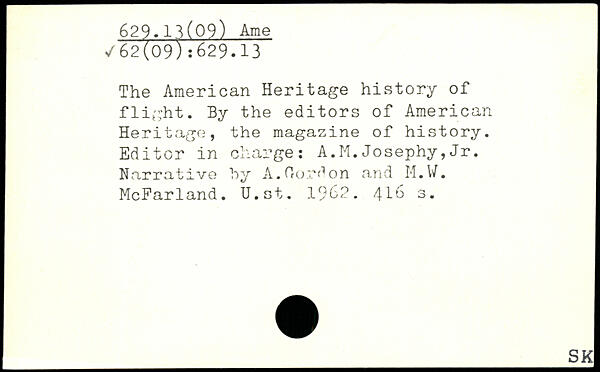 The American Heritage history of flight. By the editors of American Heritage, the magazine of history. Editor in charge: A.M.Josephy,Jr. Narrative by A.(lordon and M.W. McFarland. U.st. 1962. 416 3.