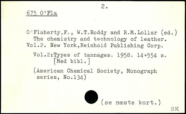 O Flaherty,Fo? V.T,Roddy and R.M.Lollar (ed,) The chemistry and technology of leather.