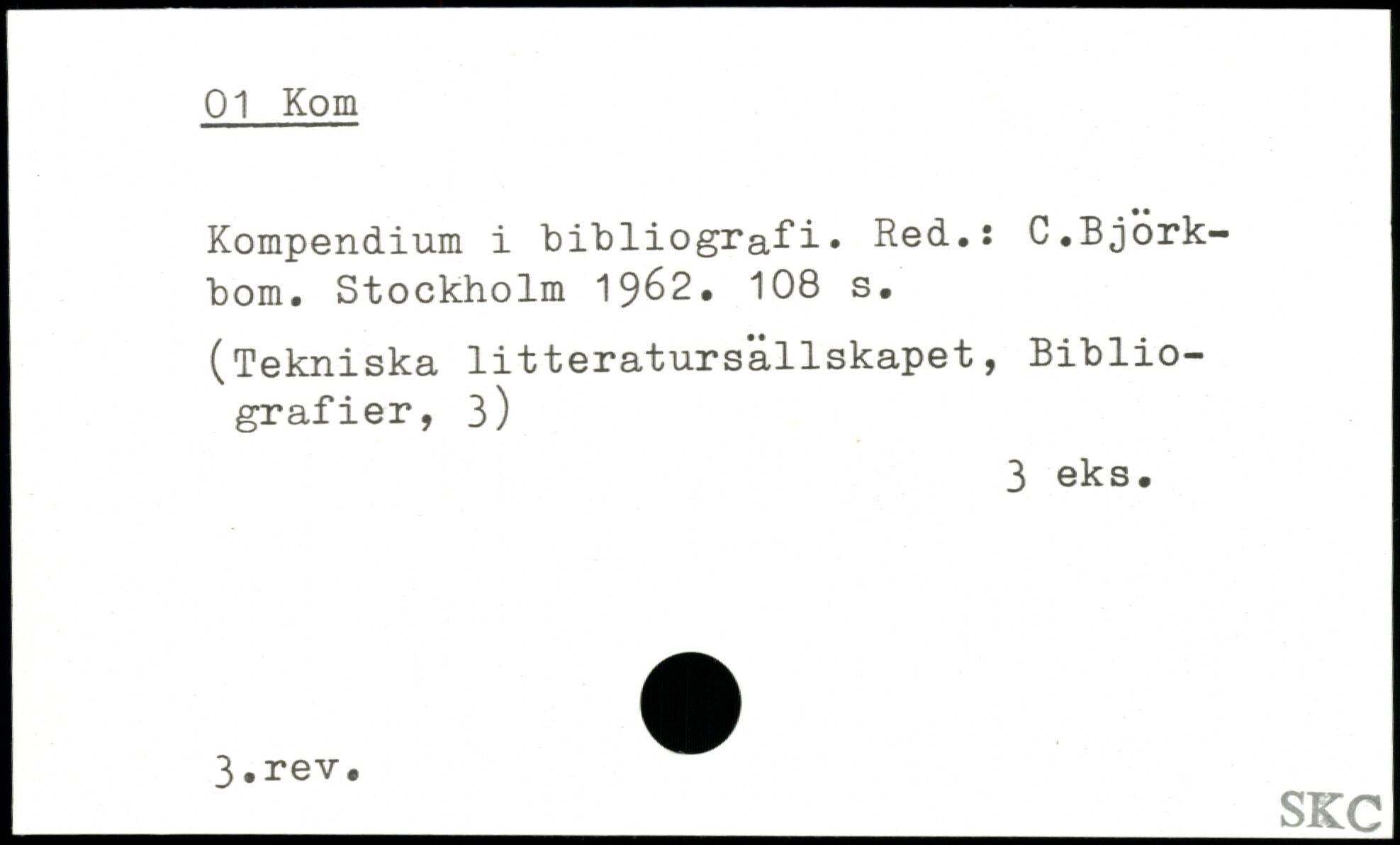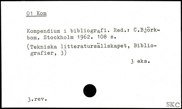 Kompendium i bibliografi, Red.: C.Björkbom. Stockholm 19&2.