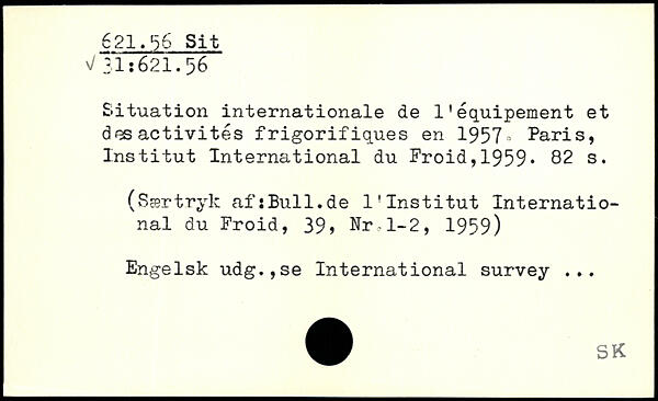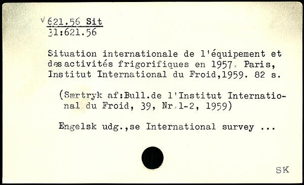 Situation internationale de l'équipement et des activités frigorifiques en 1957.
