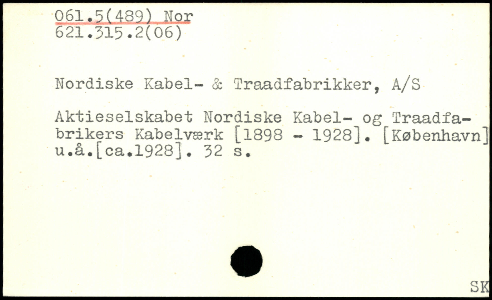 Nordiske Kabel- & Traadfabrikker, A/S Aktieselskabet Nordiske Kabel- og Traadfa-brikers Kabelværk [1898 - 1928]. [København] u.å.[ca.1928].