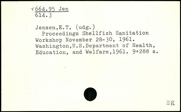 Proceedings Shellfish Sanitation Workshop November 28-30, 1961. Washington,U.S.Department of Health, Education, and Welfare,1961.